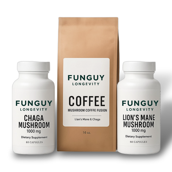 Too many people rely on quick fixes, energy drinks, and random supplements that don’t add up. We built Funguy to simplify longevity into one daily ritual — coffee for clean energy, Lion’s Mane for sharper focus, and Chaga for immune support and cellular protection.